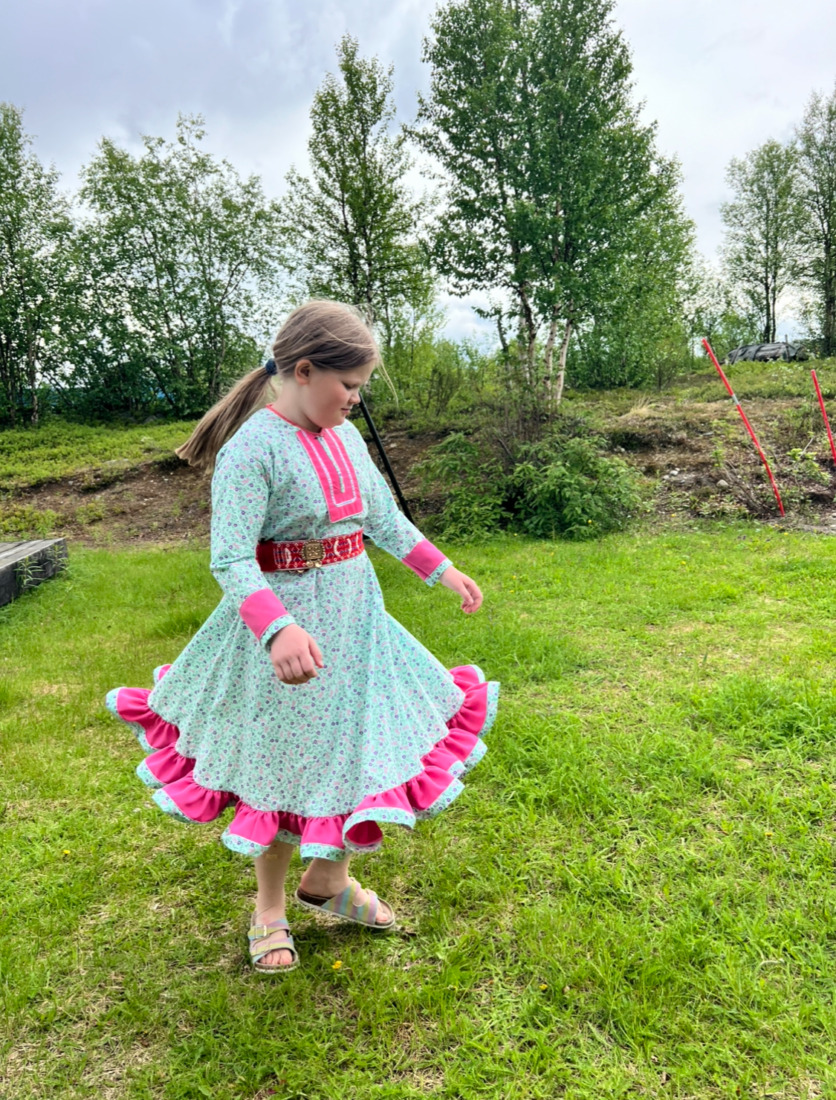 Jeg er Sara Marja Magga, fra Guovdageaidnu, Norge og fra Nietsjaevrie i Jämtland, Sverige. Jeg har vokst opp med duodji fra barnsben. Jeg husker min áhkku (bestemor) som sydde og vevde flittig, min tjidtjie (mor på sørsamisk) som alltid har […] sytt tradisjonell duedtie (sørsamisk for duodji), men også nyskapende duedtie. Ubevist har de både inspirert, men også gjort meg både nyskjerrig på duodji. Duodji er for meg både det du har av plagg og gjenstander til bruk i det daglige, men også gjenstander som som er av så stor verdi at de har samlerverdi. Dessverre lever vi i en tid der selv duodji til det daglige ikke lenger er noe som alle har tid å skape, eller har kunnskaper til å skape. Jeg har insett at duodji som er til bruk i det daglige, det må jeg skape selv, da det ikke er så lett å skaffe i markedet. Derav ønsker jeg også på sikt å bidra til å skape duodji som er mangelvare i markedet etter min egen erfaring.